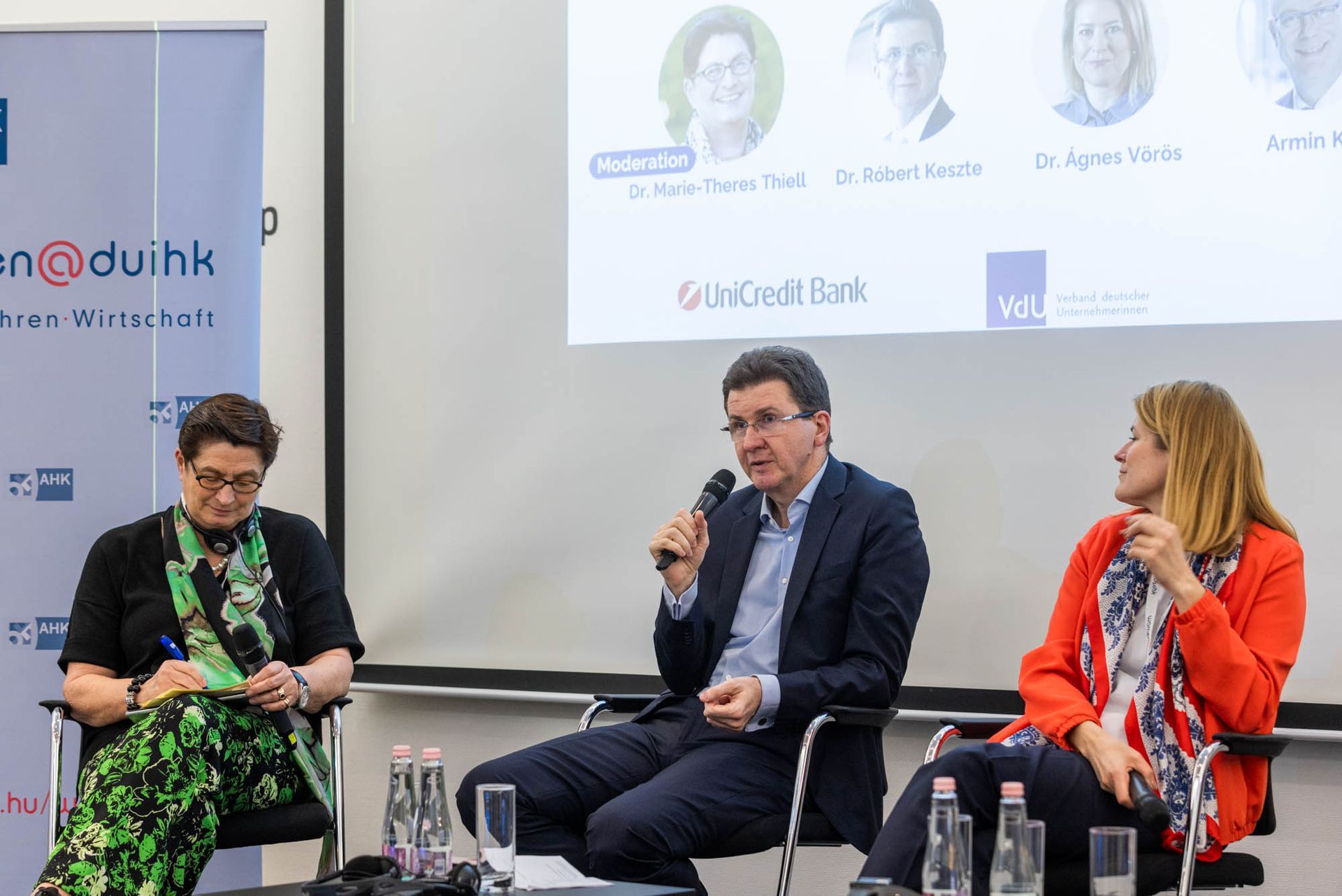 Mehr als 160 Unternehmerinnen und weibliche Führungskräfte trafen sich - wie auch schon 2023 - im Hause der UniCredit in Budapest und diskutierten die veränderten Rahmenbedingungen in der Wirtschaft.