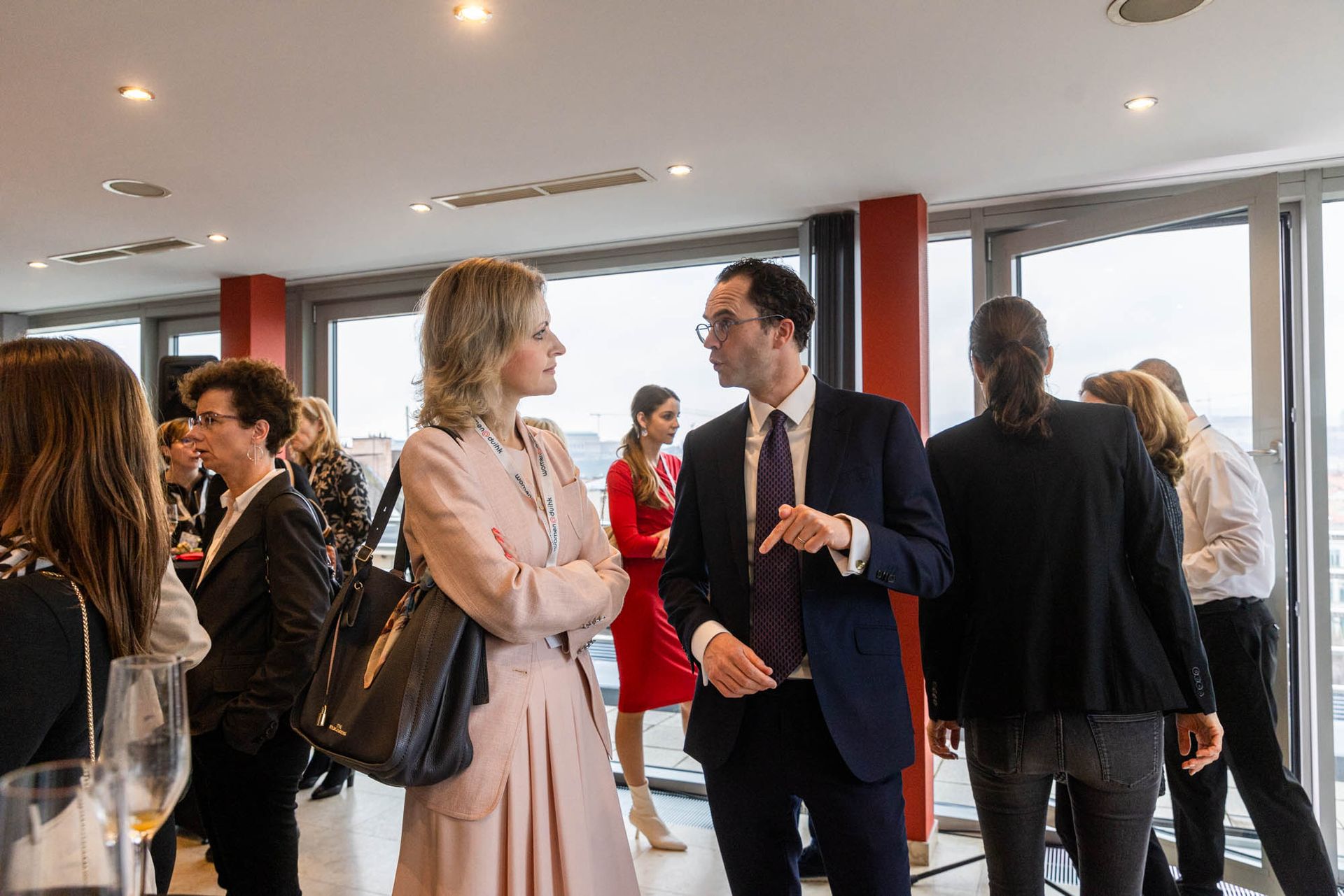 Ausreichend Zeit zum Netzwerken gab es bei dem anschließenden Mittagsempfang, wo Balázs Tóth, CEO UniCredit Bank Hungary die Teilnehmerinnnen begrüßte. Dr. Arne Gobert, Geschäftsführer von DialogUngarn und Präsident des Deutschen Deutscher Wirtschaftsclub Ungarn / German Business Club Hungary sowie András Sávos, aktueller Präsident der Kammer, als auch Dale A. Martin, formaliger Präsident, liessen es sich nicht nehmen vorbeizuschauen