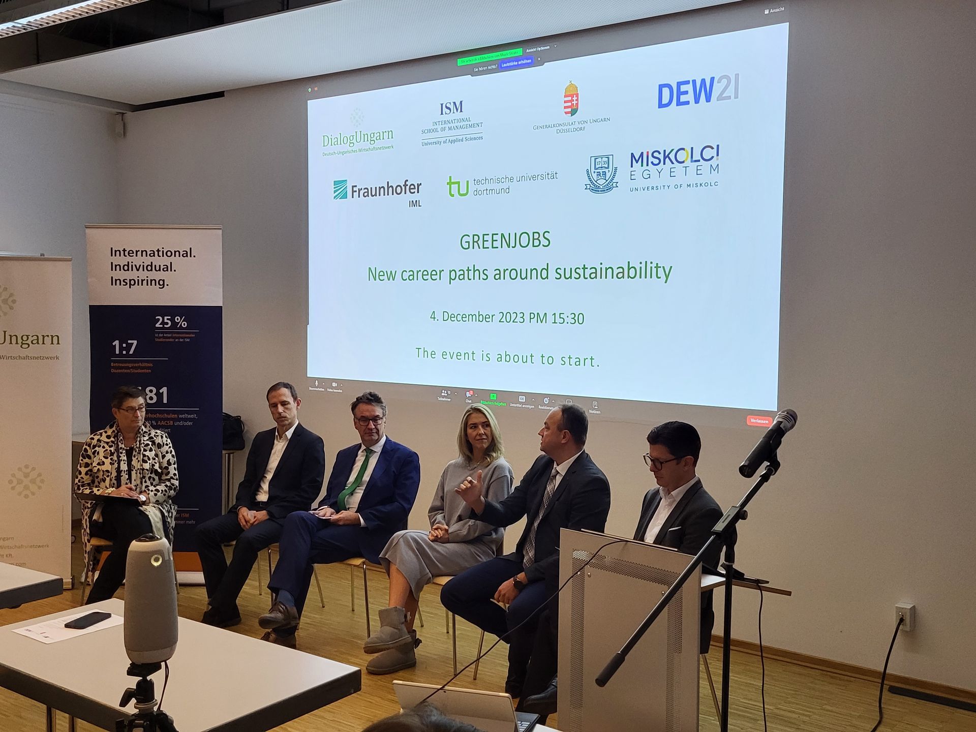 Im Publikum waren u.a. Vertreter:innen der Universität Miskolc rund um die Rektorin Prof.Dr. Zita Horvath. Die Delegation hatte sich schon tags zuvor im Rahmen ihres Besuches in NRW mit der ISM ausgetauscht, wobei eine intensivere Kooperation vereinbart wurde.