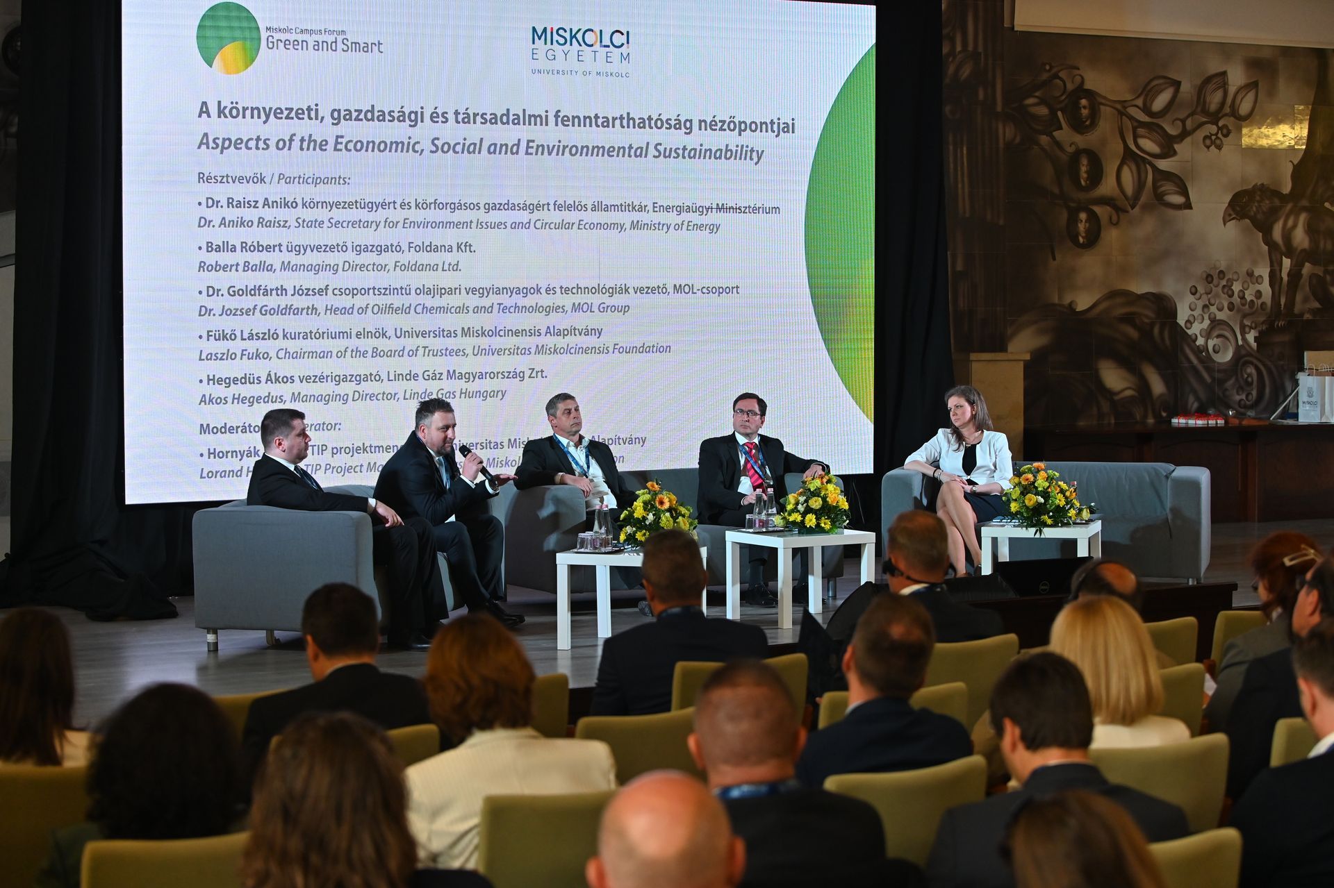 Am 18. Mai 2023 fand an der Universität von Miskolc die Konferenz „Miskolc Campus Forum Green and Smart“ statt. Bei dieser mit hochkarätigen Gästen besetzen Konferenz mit vielen Studenten sowie Partnern aus der Wirtschaft im Auditorium drehte sich alles um die Aspekte der Nachhaltigkeit – in ökologischer, ökonomischer und sozialer Hinsicht. Das Forum war organisiert von der Universität, denStudenten und Dr. Marie-Theres Thiell als Mitglied des Ku ratoriums der Trägerstiftung der Universität. Ihr Ziel war es, die Universität unter den Bildungseinrichtungen Ungarns zum Thema Nachhaltigkeit zu positionieren. Vorbild war das von Studenten der privaten Universität „International School of Management“ in Dortmund organisierte Campus Symposium, das Justizministerin Judit Varga vor zwei Jahren auf Einladung von DialogUngarn besucht hatte.